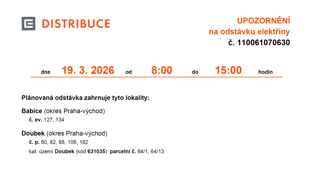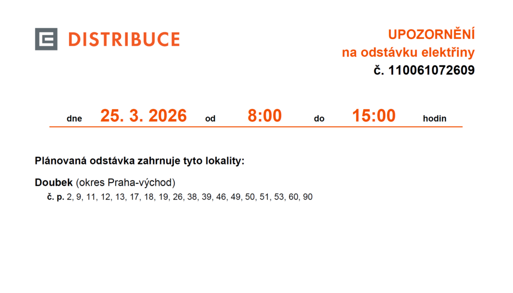 Odstávka elektřiny: 19.3. a 25.3.2026 8:00 – 15:00